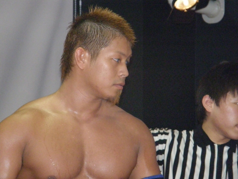 ・試合では、"その髪型なんじゃー!"といいながらサイコンが強烈なコーナーへのスプラッシュ。