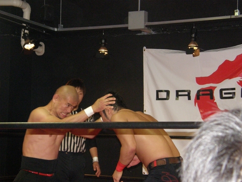 ・最後はジャクソンがダイビングニーに行こうとコーナーから飛んだ後天井に頭をぶつけてそこを押さえ込んだキマタが3カウント。