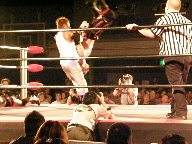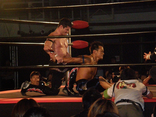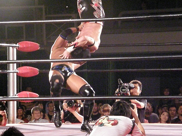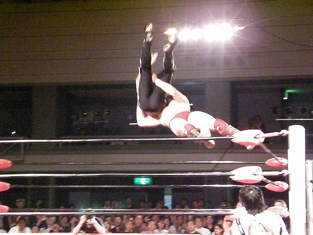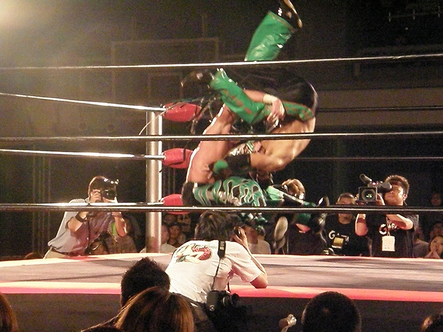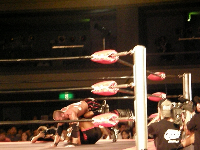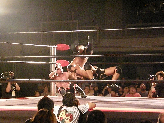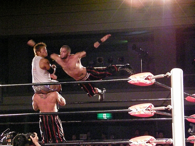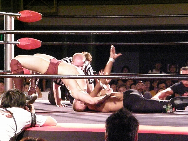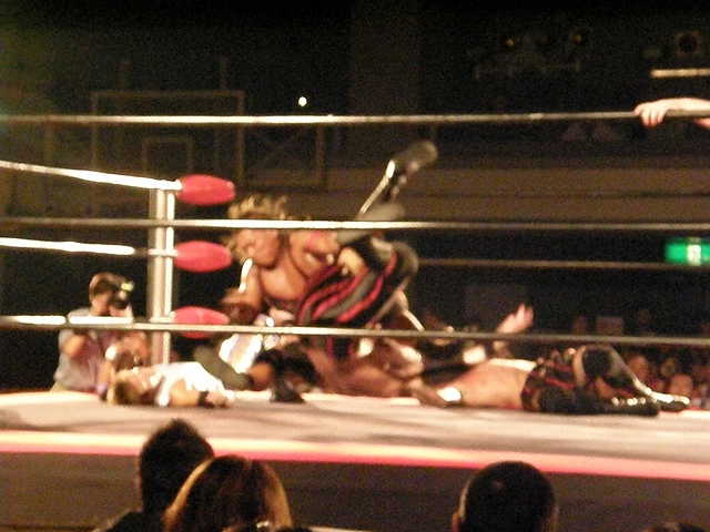 終盤は享が無限を決めるが、ブリスコも垂直落下に落とすタイガードライバーを享に決める。