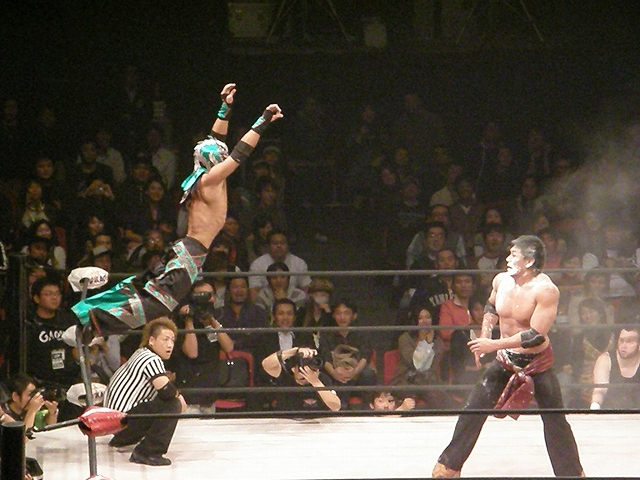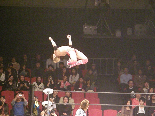 華麗な空中技は見せてくれるものの、PACと息があわなかったり、試合自体がちぐはぐになってしまう箇所が何回か見られたし。