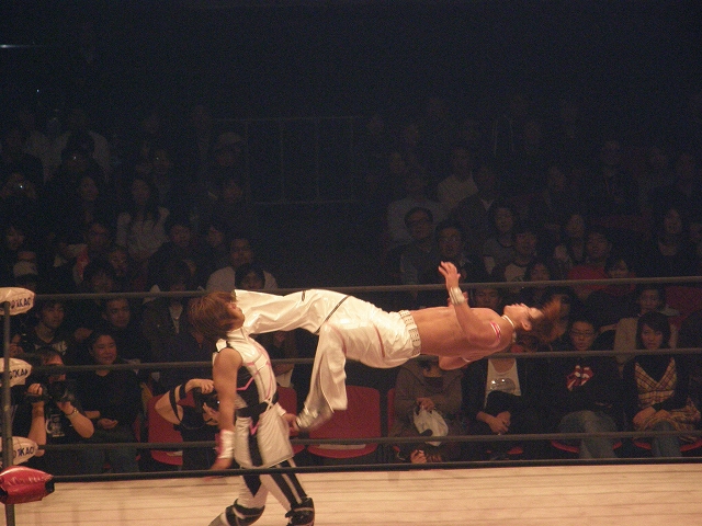 ラストライドの入り方はいつもとは違い、健介のトルネードボムのような入り方からやったな。