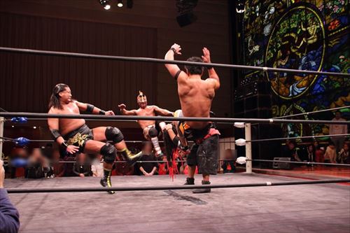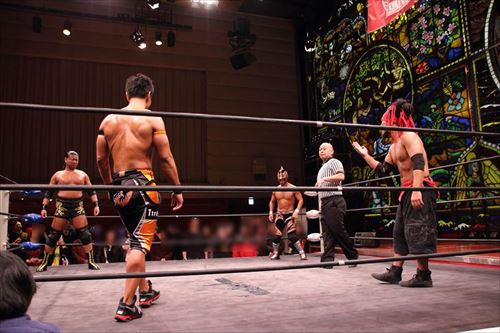 京都カス野郎プロレス。三本勝負で、菅原拓也、谷嵜なおき、ショーン・ギネス対ヤス久保田、ブッファ、MIYA 菅原にはたまたま丸め込み合戦で運良く勝てただけ。続きがあれば、じっくり手合わせ願いたい。YASSHIおめでとう&ありがとう! pic.twitter.com/82elqtWxUJ