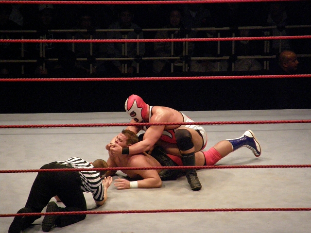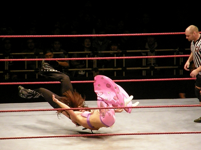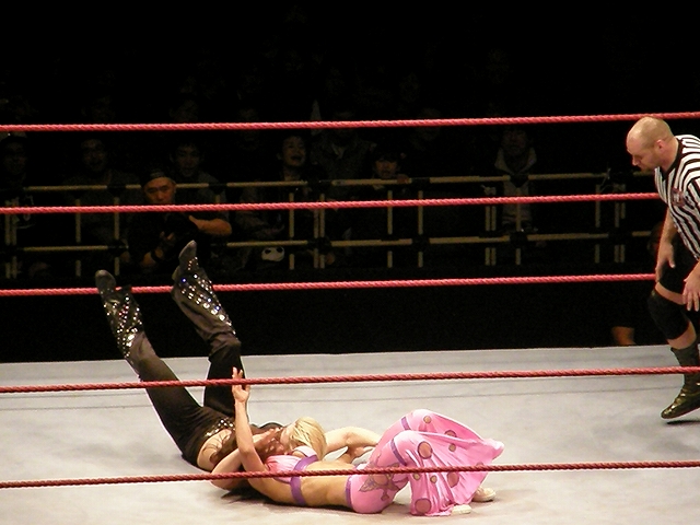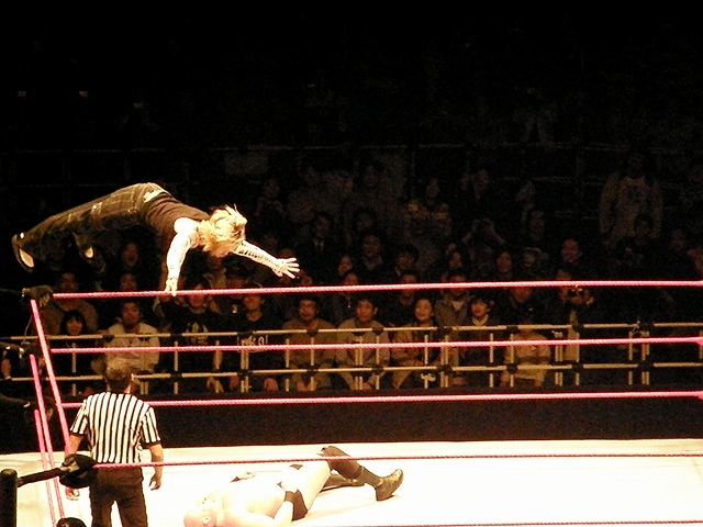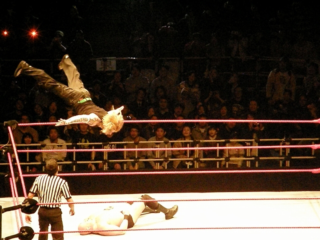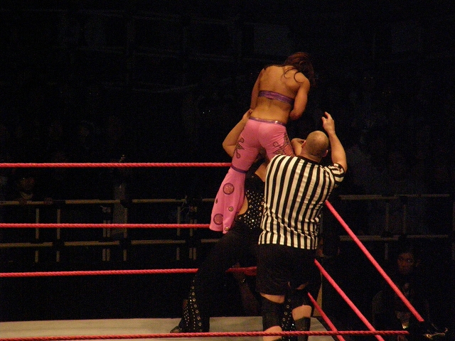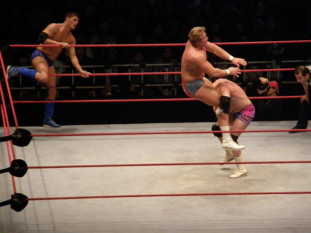 ミッキーもべスをコーナーに据えての10パンチや、ルーテーズプレスで攻め込むが、最後はフィッシャーマンズバスターでピン。