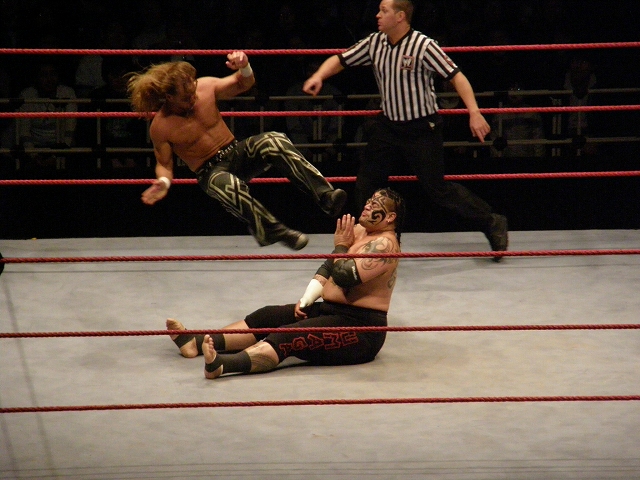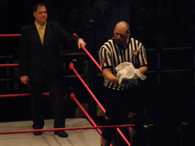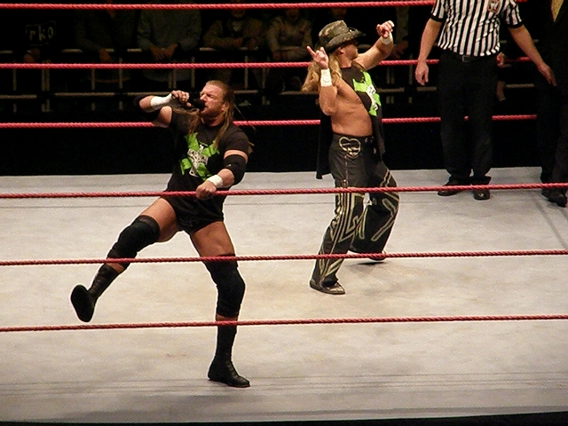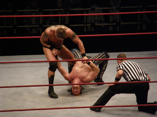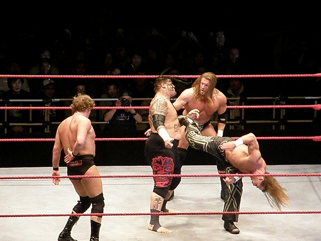 HBKが捕まった後に、HHHはリーガル卿にレイスばりのハイニー(JR風に)を決めるとウマガにはフェイスクラッシャー、そして再度リーガル卿にスパインバスターとお得意のラッシュ。