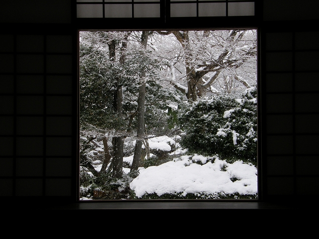 雪が止んできたので、溶けてしまう前に急いで次の目的地源光庵に移動。