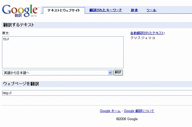 「Y2J」を翻訳すると、しっかりと「クリスジェリコ」と訳されるのだ!