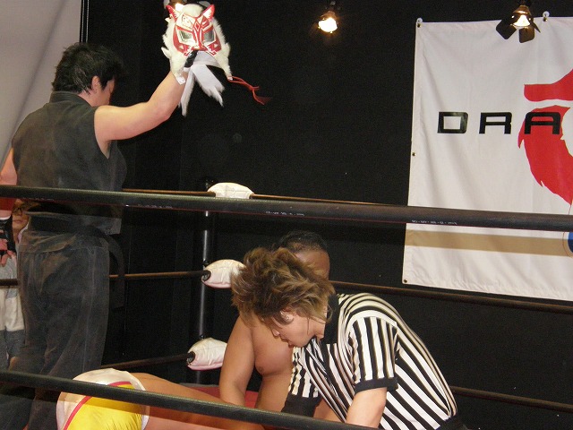 NEX対リキオフィス●Round1●~3.12 ドラゲーアリーナ~ 今日は久しぶりのNEX~。 仕事が終わってすぐに神戸まで行ったものの、着いたときには既に開場した後。 試合開始には何とか間に合ったけど、結局後ろの方でしか見れなかった。 ----------------------- ※3/12 リキオフィスのブログ 「NEX」 --------------------- 今日の試合結果(オフィシャルのドラゲーNEWSより転記) --------------------------- ×PAC(10分45秒 腕極めエビ固め)スペル・シーサー○ ×ジャクソン・フロリダ(7分30秒 片エビ固め→フライング・カーペット)キング・アリババ○ 超神龍 TAKUYA《リキオフィス》 シーサーBOY vs 角英輝 〃 ○シーサー組(11分32秒 反則勝ち→マスク剥ぎ)角組× ×トザワ(4分58秒 体固め→リキラリアット)泉州力○ --------------------------- 後ろの方だと、グラウンドの攻防をされると見えない・・・。 第1試合のシーサーとPACの攻防なんかは、半分以上見えてないしな。 しかし、試合前に出てきたアラケンが裏に下がる時に、後ろの方のお客さんに"見えますか?"って気遣ってくれてたのはスゴイ好印象。 さすがはアラケン。 そして注目のリキオフィスとの対抗戦では、結果だけ見れば1勝1敗。 とはいえ、1勝はマスクを取られての反則勝ちだから、今日はNEXの負けになるかな。 メイン終了後には、29日のNEXプレミアムでリキオフィス対NEXの6人タッグと、30日のはびきのど真ん中プロレスに乗り込むとBOYが宣言。 会場の雰囲気は結構白熱してたね。 セミファイナルの試合中は、BOYやシェンロンへの歓声の方がリキオフィス軍への罵声よりすごかったけど、さすがにマスクを剥ぎ取った試合後は"帰れ!"コールが至るところから出てた。 物が投げ込まれないかなぁと思ってたけど、さすがにそこまではナシ。 メインのトザワ対泉州力は、トザワもヒップアタックで反撃は試みてたんだけど、最後はあっさりとリキラリアットで負け。 泉州へ罵声を浴びせる時間もなく終わってしまった感じ。 そういえば今日思ったことは、メインイベントが終了すると、次回のNEXのチケットを求めて何人かのお客さんは一気に移動しだすのはどうなんだ? 試合後のマイクアピールとかも聞いてやれよ。。。 トザワが3カウント取られてゴングが鳴った瞬間に移動するのはあっさりしてるというか、何というか。 PR