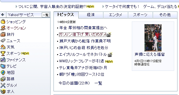 そういえば、昨日はヤフーのトップにネイチのニュースが出てきやがった。