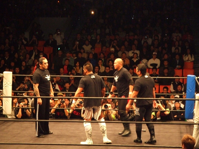 みのるとTARU、齋藤と潮崎が客席まで行ってやり合う。
