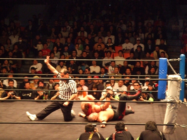 ナイスジャマイカを仕掛けるけど、当然上がらなくて、最後は逆にエベレストジャーマンでピン。