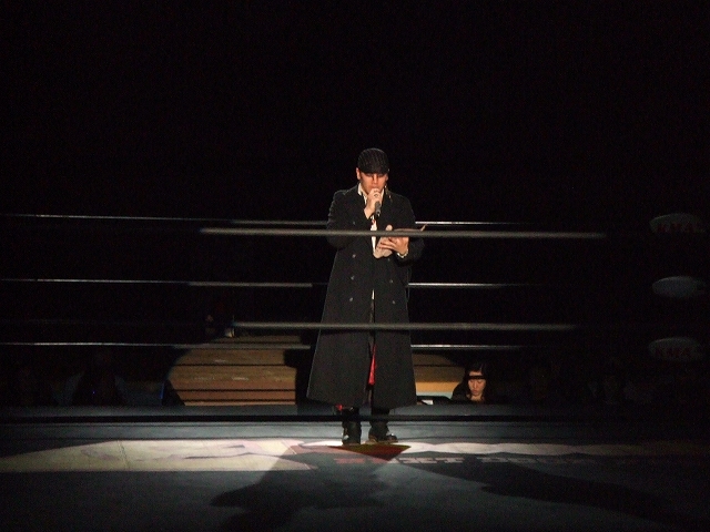 試合後も立ち上がれないニートを尻目に、透ちゃんのマイクで興行を締める。