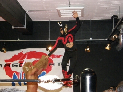 ・試合では、"その髪型なんじゃー!"といいながらサイコンが強烈なコーナーへのスプラッシュ。