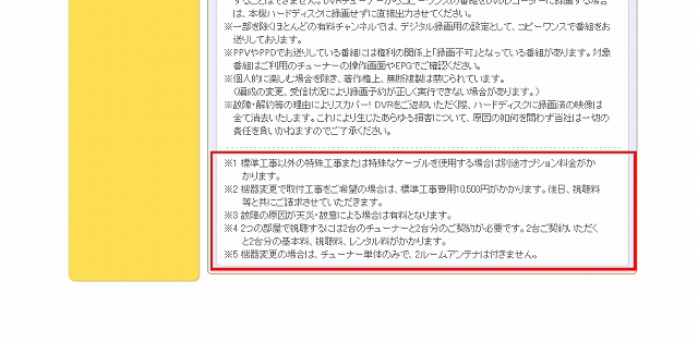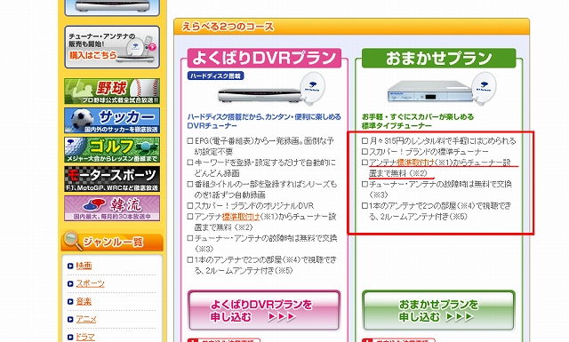 スカパーおまかせプランに注意! 今日はとうとうマイルームにスカパーチューナーをつけれました~。 これでようやくビデオテープを使わずに、直接PCへWWEとかドラゲーを保存できるので楽になるわ。 さて本来はうれしいはずなんやけど、スカパーレンタルサービスで腹が立ったことがあったのでその件をアップしときます。 腹立ったことというのは、「スカパーの工事費無料というのはウソなん!?」 その前に、状況を少し整理。 まず、現状としてリビングにはスカパーチューナーはあるけど、自分の部屋では見れないので、自分の部屋で見るためにはリビングのビデオデッキでRAWなりドラゲー無限大を録画して、自分の部屋のビデオデッキで見るという状況でした。 でも自分の部屋のビデオデッキではさすがにビデオヘッドの限界なのか、テープを交換しようが、クリーニングをしようが画質が悪かった。 いまさらビデオデッキを買い換えるのももったいないので、自分の部屋にスカパーチューナーを設置すれば、直接PCにキャプチャしてしまえるので保存も楽になるし、ビデオを介さないのでいい画質で見れるというメリットもありチューナー追加設置を決意したという経緯です。 さてそこでスカパーのホームページなりを調べてみると、1つのアンテナで2部屋のチューナーにつなげれるアンテナがあり、レンタルサービスをしてるのを発見。 http://sptv.jp/plan/ext_customer.html これならそんなに費用もかからないし、工事費も無料であればいいかと思い申し込みました。 そのときにも費用の件は確認しててんけど。。。 "今はスカパーチューナーがついてるので、2台目の設置なら工事費はかからないんですよね?" "そうですね~。" さて今日は工事当日。 最初に工事の業者から言われたこと。 まずはアンテナ設置の際。 "え~と、今ついてるアンテナの横に、設置する感じでいいですか?" "え?いや、アンテナ1つで2つの部屋にいけるって聞いたんですけど。。。" "あ、そうなんですか?" "聞いてる話と違うので、契約上の問題で可能なのかどうかスカパーの方にお客様の方から電話して確認してもらってもいいですか?" "それと今回、古いアンテナを2ルームアンテナに付け替えるなら、4000円か1万円かかってしまうかもしれませんね。" "え?費用かかんの?" "そうですね~。古いアンテナを外して、廃棄しますんで工事費が発生してしまいますね。" この時点で不信感が募ってきたため、費用も含めてスカパーに電話をかける。 散々待たされたのはいいとして、 "すいません。今回、一つの部屋で見てたスカパーを2つの部屋で見るために、2ルームアンテナのレンタルを申し込んで、今設置工事をしてもらってるんですけど、契約上別に問題ないんですよね。" ↑いまだに我ながらこの質問の意味が分かりません。 契約上無理なら申し込んだ時点で無理ってなるやろ~。 しかし、この質問を向こうは理解したらしく、 "え~っと、少しお待ちくださいね。申し訳ありませんが、お客様番号はお分かりになりますか?" "xxxxxxxxxxxxxです。" "分かりました。5分ほどしたらかけなおしますので、お待ちいただいてよろしいですか?" "・・・はい。" その後、何で5分も待たないと回答が出ないのかは分からないけど、電話がかかっててきて "契約上は何も問題ありませんので、大丈夫です。" "分かりました。それと、業者の方から工事費が発生するって言われてるんですけど、無料じゃないんですか?" "え?業者が費用発生するって言ってるんですか?" "ハイ、古いアンテナを外して廃棄するのに4000円か1万円かかるって言われてるんですけど。" "え~、少々お待ちくださいね。また5分ほどでかけなおしますんで、お待ちいただけますか?" "・・・はい。" 約5分後・・・ "確認したんですけど、費用はかかってしまいますね。今付いてるアンテナというのは、お客様が購入されたものですので、これを廃棄するなら費用が発生してしまいます。" "レンタルなら、アンテナを外した時点でこちらに着払いで発送していただくんですけど、お客様が購入されたアンテナですので。" ↑この時点で、スカパー側としては責任を回避してます。 つまり、レンタルでなく、そっちでアンテナを買ってんねんからそっちで責任を持てよってこと。 しかもその後に言ってることが中々面白い。 "費用に関してはお客様と業者の方で、まあ相談していただくか・・・。" ↑つまり、僕が業者に"まけて~な"ってお願いしろってことですね。 そしてここでも、ウチは無関係ですよ、と暗に言ってますね。 "それか、もし業者がまだアンテナを取り外してないなら、古いアンテナをそのままにしておけば費用はかからないと思いますが。" ↑それなら2ルームアンテナにした意味がないですよね。 大体、2つのアンテナを付けたくないので、このレンタルサービスを申し込んでんのに。 "いや、もう業者の方がアンテナ取り外してしまってるんで。" "そうですか。それでは費用は業者の方に支払ってもらうしか・