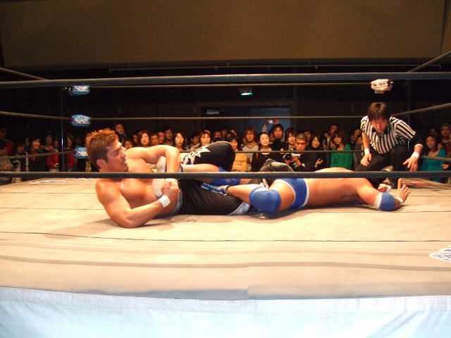 三角蹴りやツイスターを出すも、2カウントで返す大和。