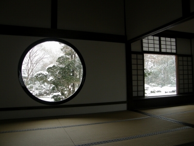 雪が止んできたので、溶けてしまう前に急いで次の目的地源光庵に移動。