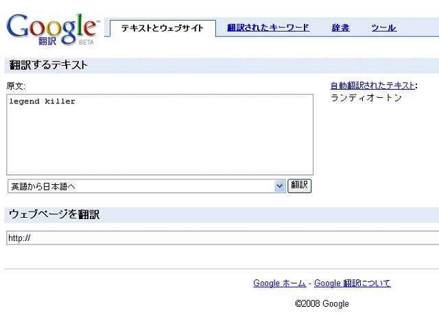 「Legend Killer」と入れて、英語から日本語へ翻訳すると、「ランディーオートン」と訳される!