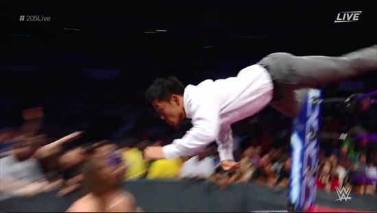 .@TozawaAkira's fighting spirit is on FULL DISPLAY as he takes it to his #SummerSlam opponent @WWENeville! #205Live @WWENetwork pic.twitter.com/1O6zQdAgGU