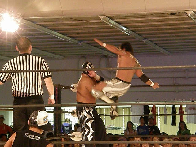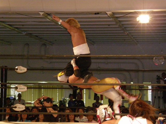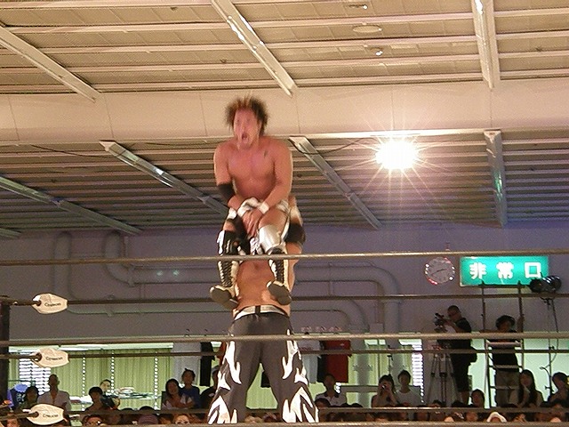 試合は後半に入り、岩佐がキッドに対して豪腕・華厳・熨斗紙と畳み掛けたところで3カウント取れなかったのが痛い。
