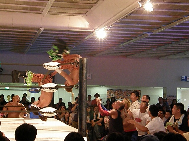 フジイさんも場外でサイコンとやりあうが、サイコンはフジイさんの頭をパイナップルで叩きつける。